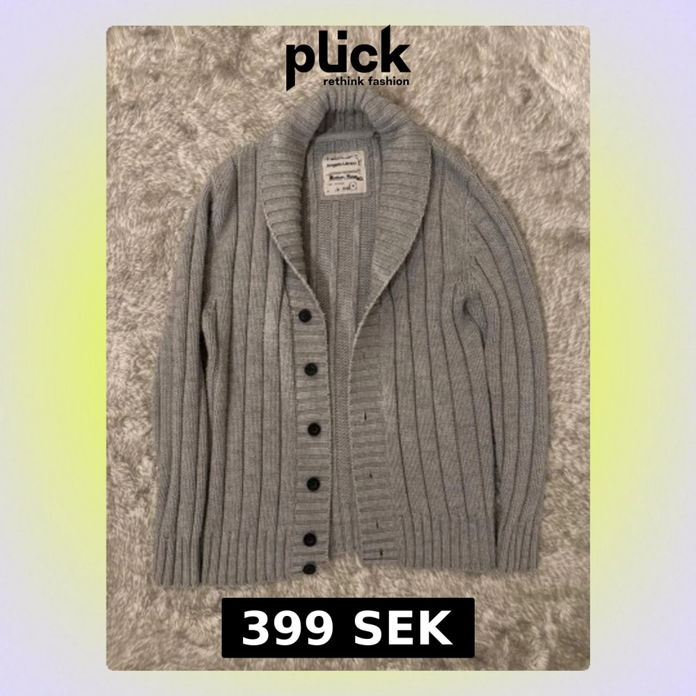 Grå ribbstickad kofta med bred krage och svarta knappar framtill. Koftan har lång ärm och är gjord i mjukt stickat material, perfekt för kyliga dagar. Klassisk och enkel design som är lätt att matcha. Kontakta gärna om ni har några frågor eller funderingar gällande pris eller plagg