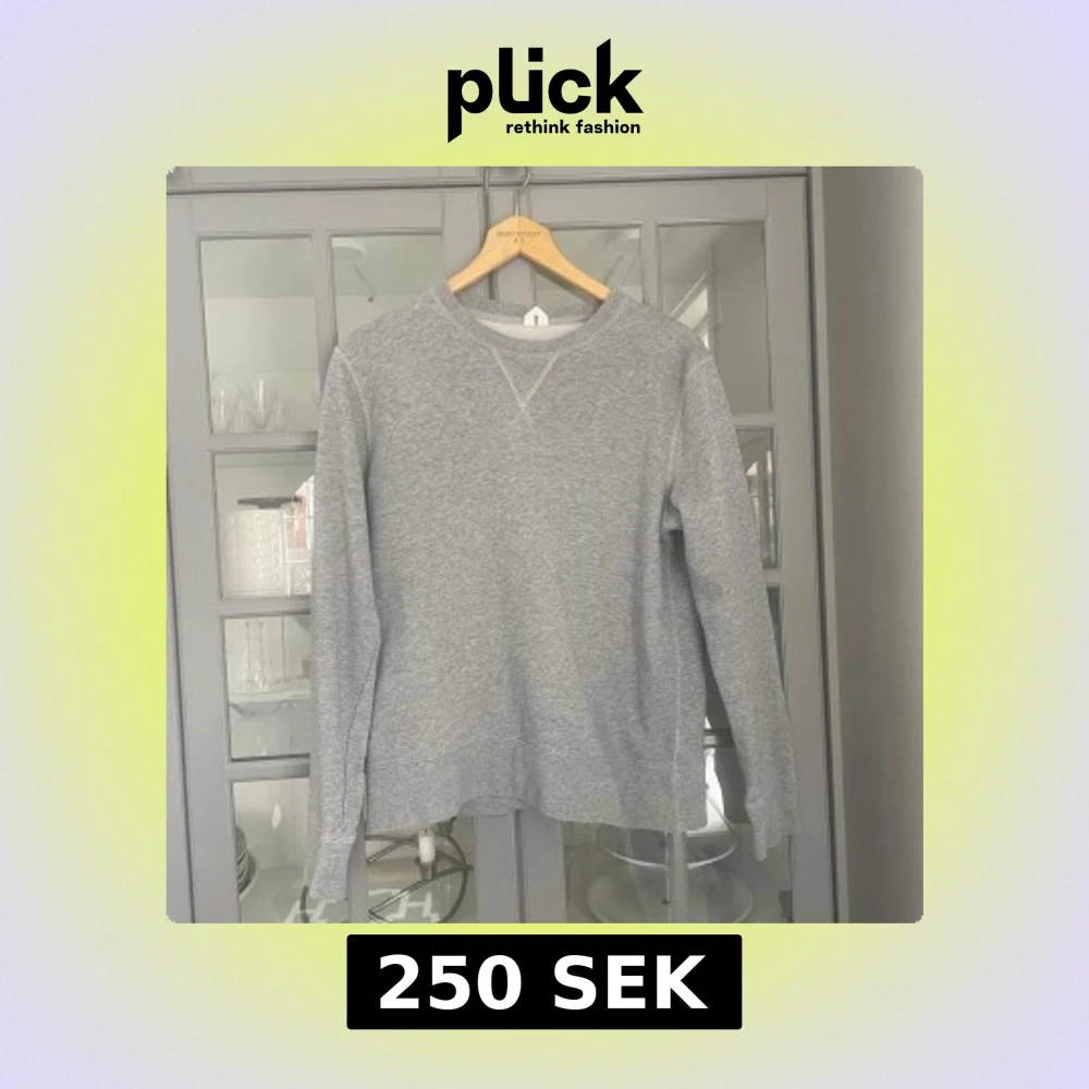 Säljer en stilren grå sweatshirt med rund hals och långa ärmar. Perfekt för en avslappnad look. Tröjan har ribbade muddar vid ärmslut och nederkant för extra komfort.