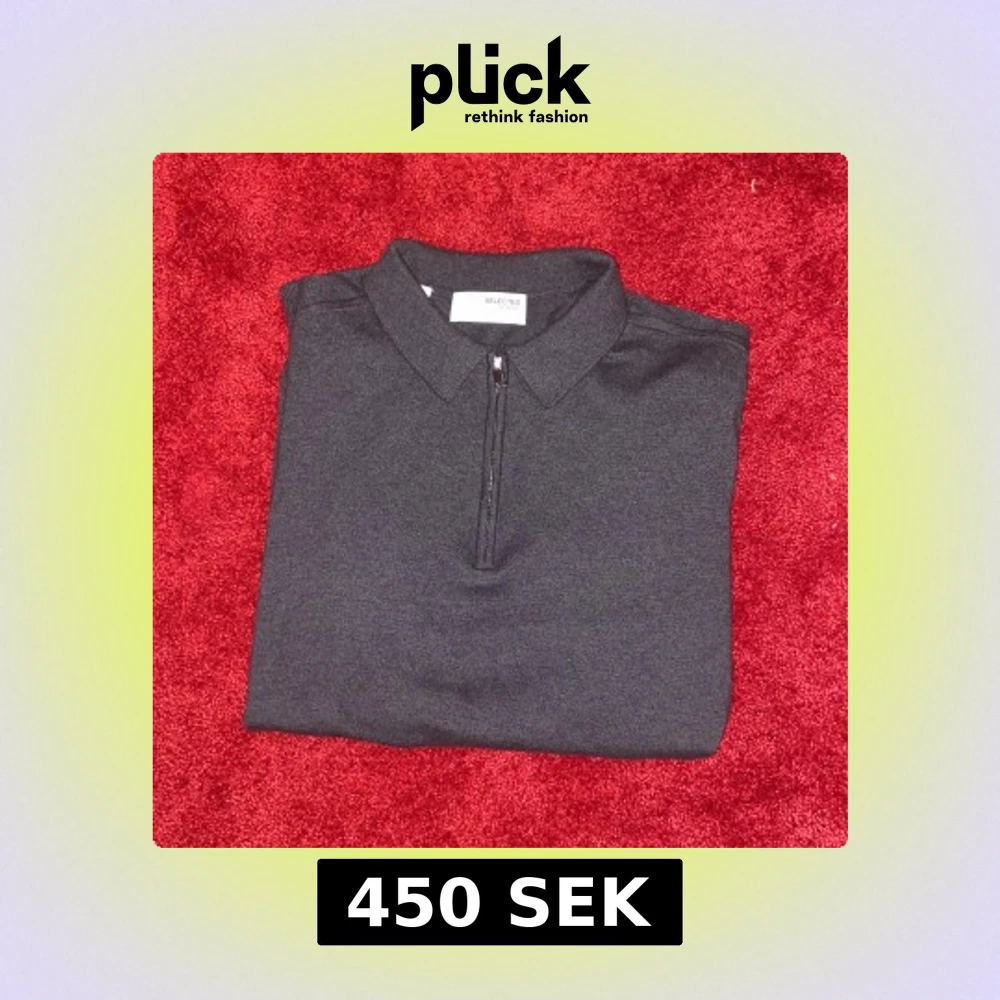 Snygg grå pikétröja från Selected med dragkedja framtill. Perfekt för en stilren look. Tröjan har långa ärmar och en klassisk krage. Pris kan diskuteras.