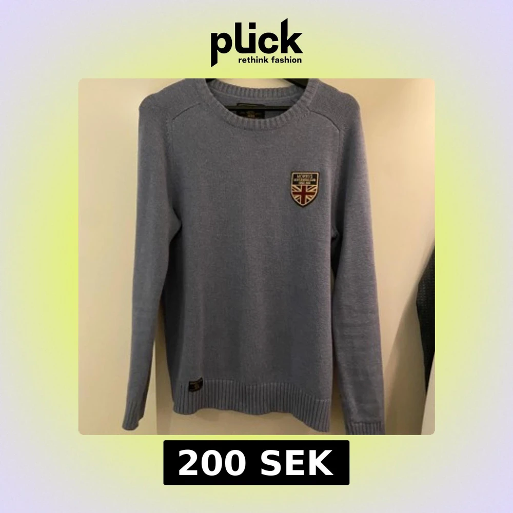 Säljer en stilren blå tröja från Morris Gents med ett emblem på bröstet. Tröjan har långa ärmar och ribbade kanter vid hals, ärmslut och nederkant. Perfekt för en avslappnad och snygg look.