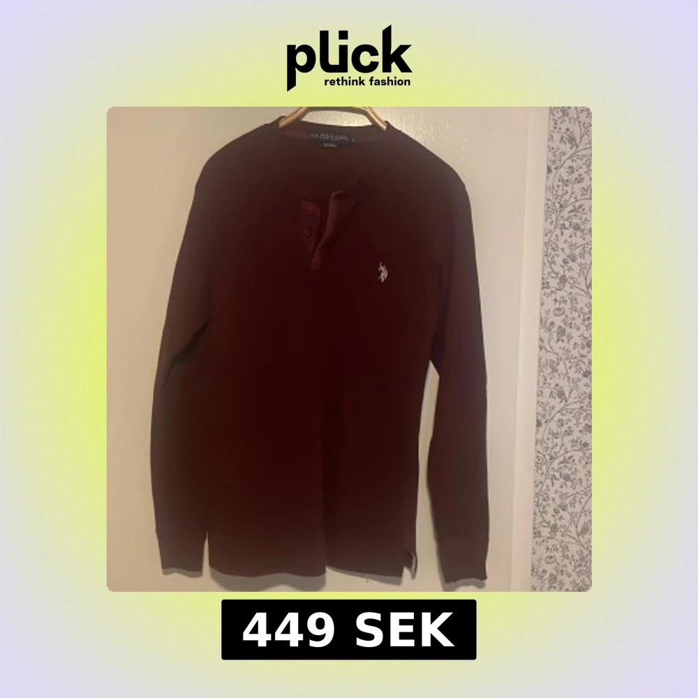 Säljer en stilren vinröd tröja från Polo med knappar vid halsen och ett broderat logotypmärke på bröstet. Tröjan har långa ärmar och är perfekt för en avslappnad look. Kom DM kring några funderingar.
