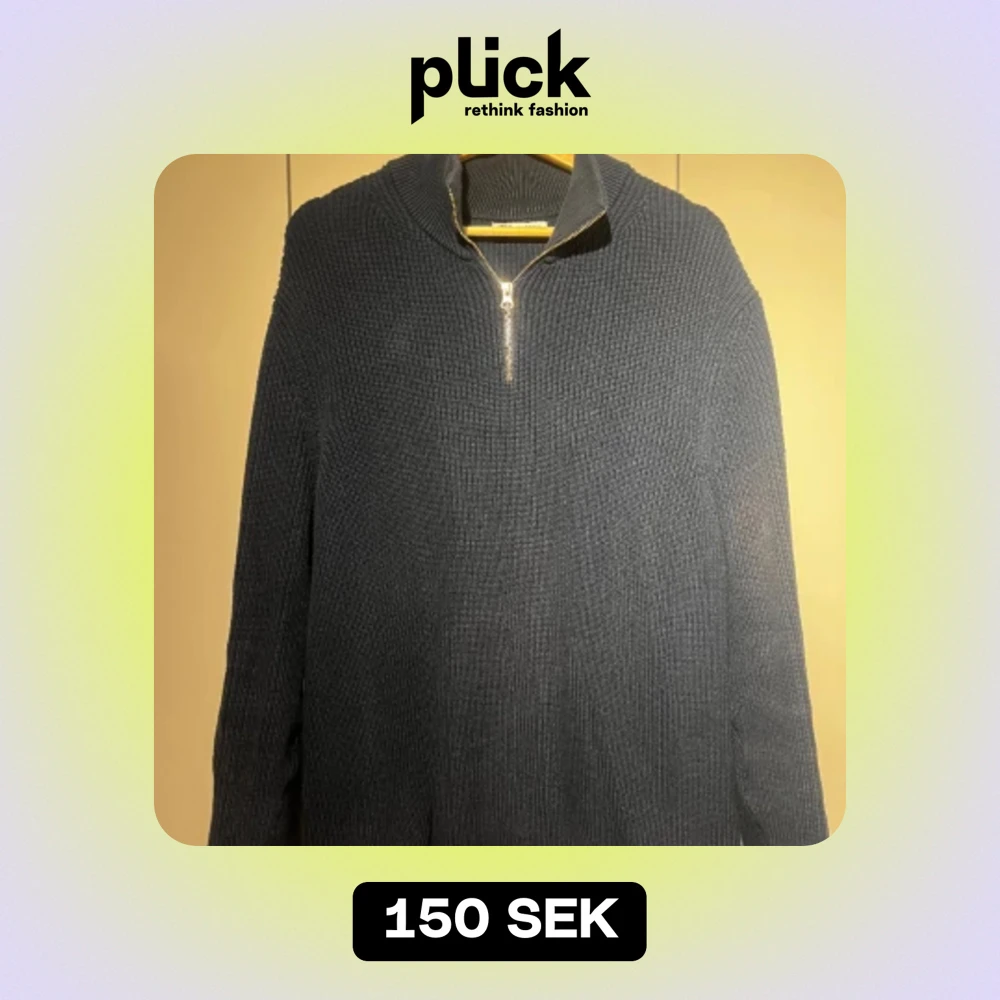 Mörkblå zara halfzip i storlek xl men sitter precis som en l för att den är krympt