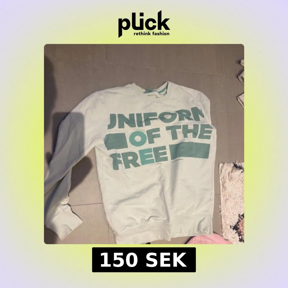 Säljer en vit sweatshirt från G-Star RAW med texten 'UNIFORM OF THE FREE' i grönt på framsidan. Tröjan har långa ärmar och en klassisk rund halsringning. Perfekt för en avslappnad stil.