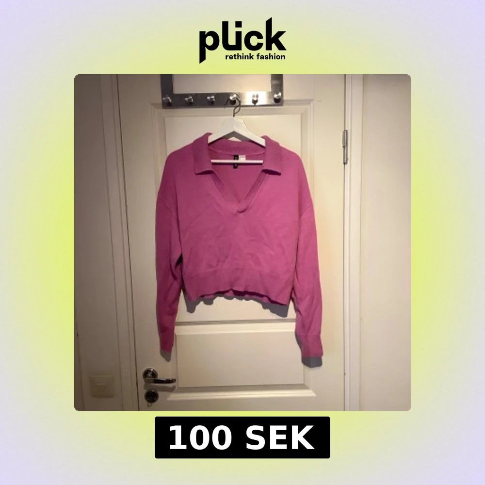 Säljer en snygg rosa tröja med v-ringning och krage. Tröjan har långa ärmar och en croppad passform som ger en trendig look. Perfekt för att liva upp garderoben!