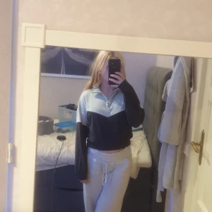 Långärmad varm fin tröja i färgerna grön vit och svart