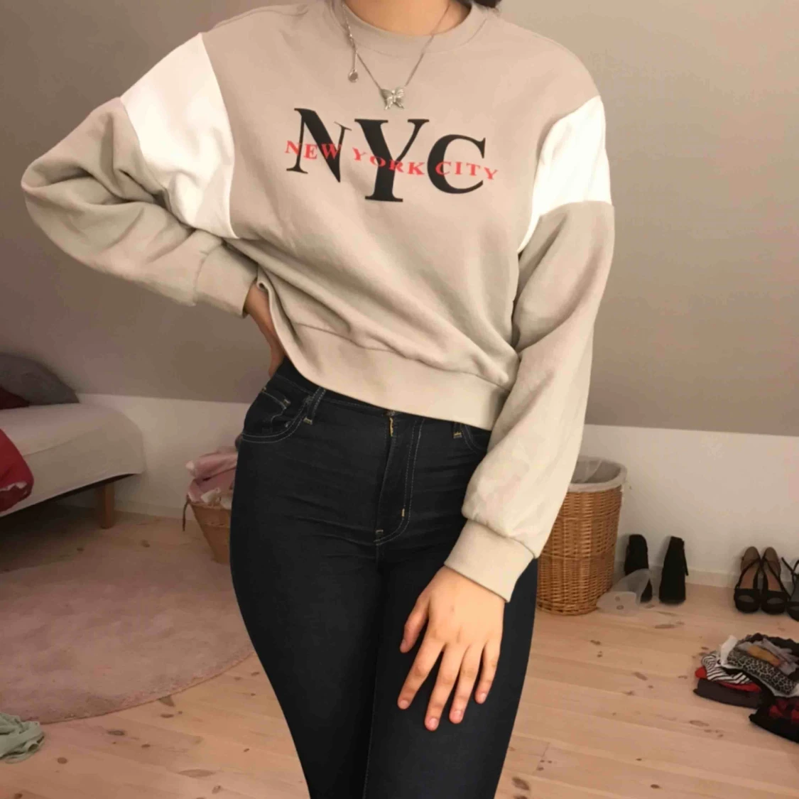 En fin tjocktröja med fina färger och tryck, aldrig använd