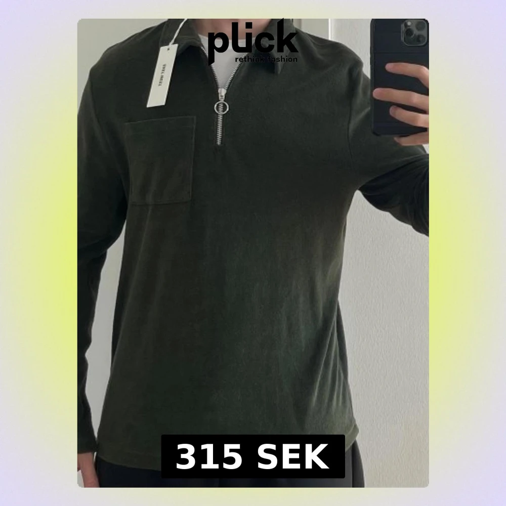 Brothers frotté mörk grön half zip. Storlek S.