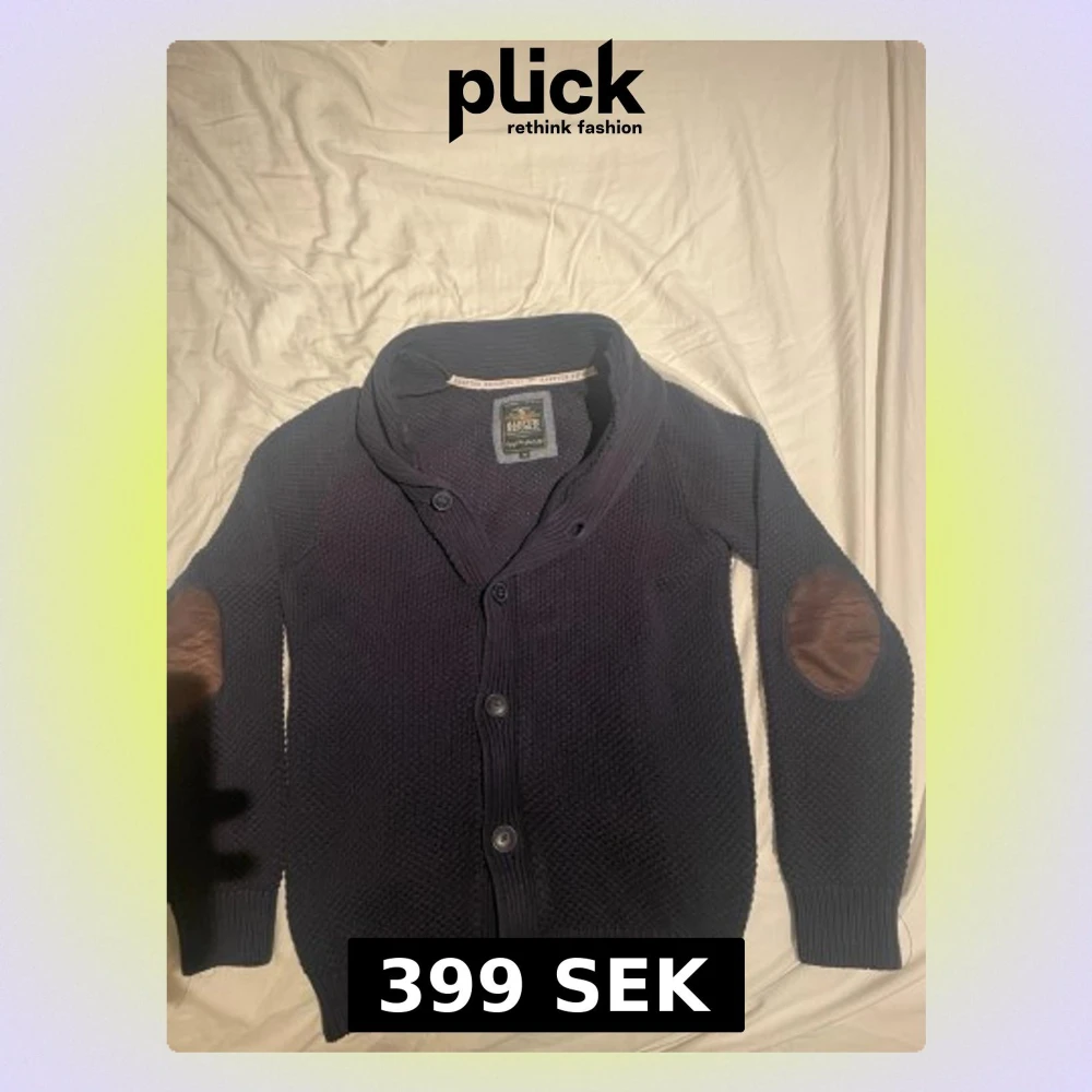 Säljer en mörkblå stickad kofta från Hampton Republic i storlek M. Koftan har snygga bruna mockadetaljer på armbågarna, bred krage och knäppning med fyra knappar framtill. Perfekt för dig som gillar klassisk och chill stil🌟