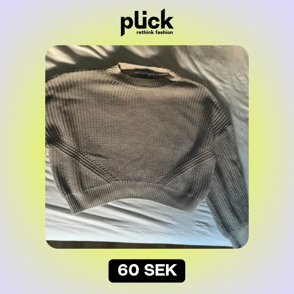 En hårdstickad croppad grå tröja från NaKd i storlek xs, den är overzised i modellen (jag är vanligtvis en storlek M). Jättefin i materialet och sitter jättefint, speciellt med balongärmarna. Har bara aldrig använt den:)