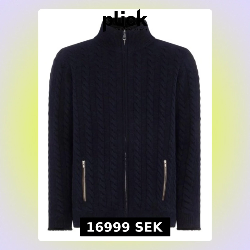 Exklusiv mörkblå kabelstickad Jacka från N.Peal med dragkedja framtill och två fickor med silverfärgade dragkedjor. Insidan har mjukt foder längs kragen för extra komfort. Perfekt för dig som gillar stilrena och lyxiga plagg.