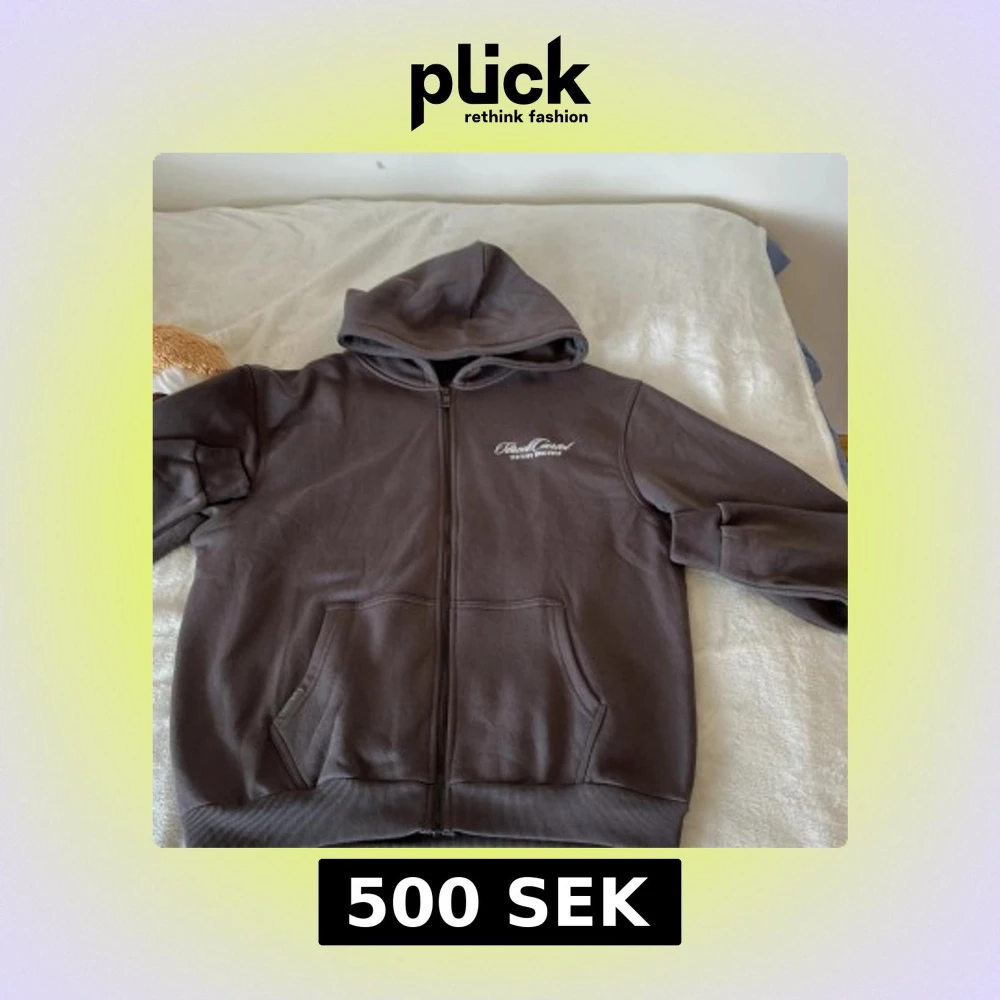 Säljer en mörkgrå hoodie från Street Cartel med dragkedja och broderad logga på bröstet. Tröjan har två fickor framtill och ribbade muddar vid ärmslut och nederkant. Perfekt för en avslappnad stil.