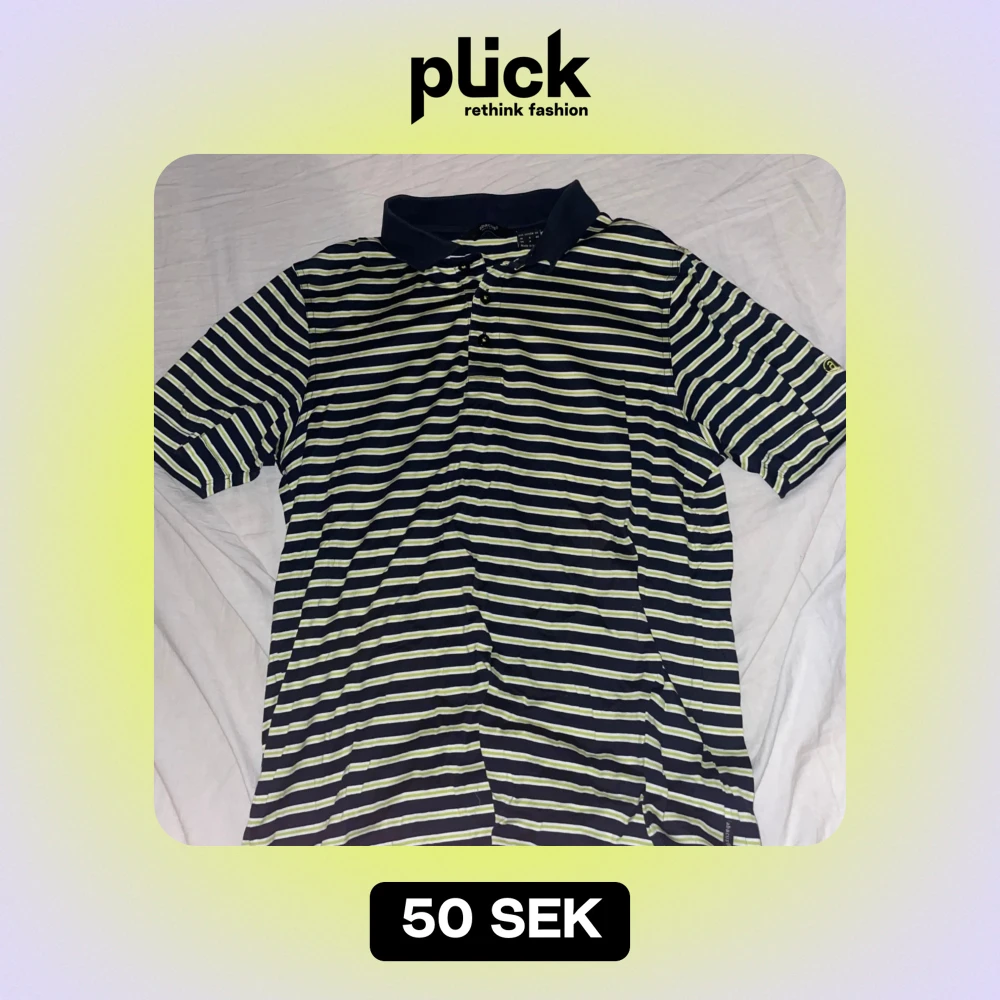 Säljer en snygg randig pikétröja från Abacus i mörkblått och vitt med gröna ränder. Tröjan har korta ärmar och en klassisk krage med knappar. Perfekt för en avslappnad dag eller en runda golf. Skön och stilren design!