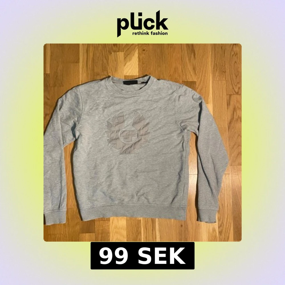 Säljer en stilren grå sweatshirt från Belstaff i storlek S men passar också XS. Tröjan har ett broderat Belstaff-emblem på bröstet och är tillverkad i mjuk bomull. Klassisk rund hals och långa ärmar, perfekt för chill dagar. Enkelt att matcha med jeans eller joggers.