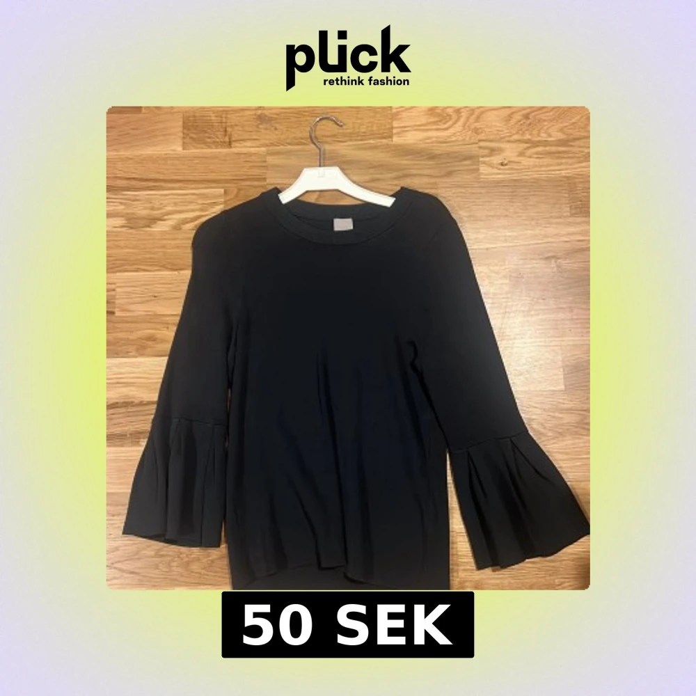 Säljer en stilren tröja från H&M i storlek XS. Tröjan har långa ärmar med volangdetaljer vid ärmsluten och en rund halsringning. Perfekt för en chic och enkel look. Mörk grå, grön nästan svart färg men lite ljusare