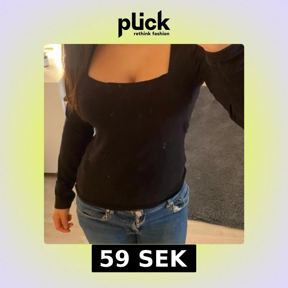 Säljer en svart långärmad topp med snygg fyrkantig ringning. Perfekt basplagg som är lätt att matcha till olika outfits. Mjuk och stretchig i materialet för en bekväm passform.