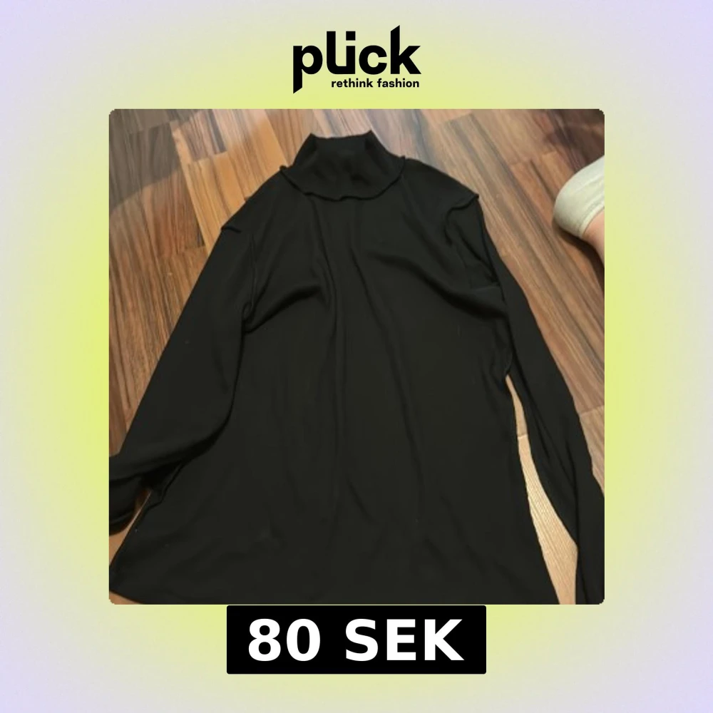En svart polotröja från H&M i storlek L. Tröjan har lång ärm och hög krage, perfekt för lager på lager. Enkel och stilren design som funkar till många outfits. Materialet känns mjukt och följsamt mot huden.