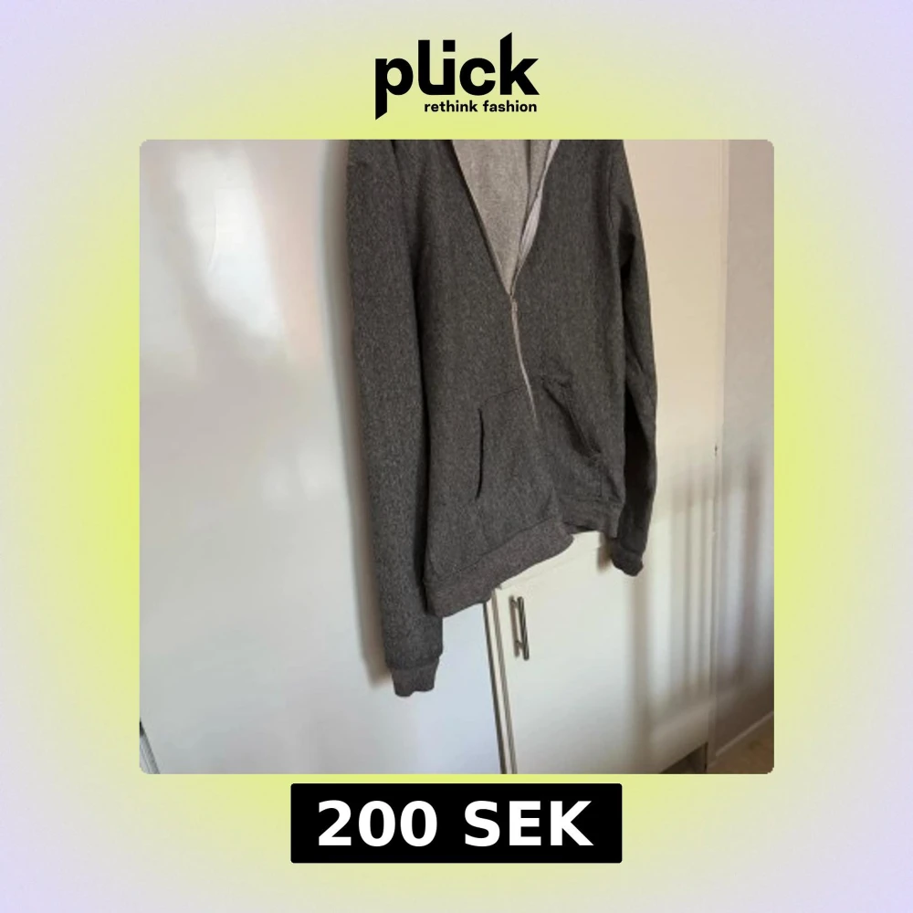 Säljer en grå hoodie med dragkedja och fickor framtill. Perfekt för en avslappnad stil. Den har långa ärmar och en mjuk insida för extra komfort.