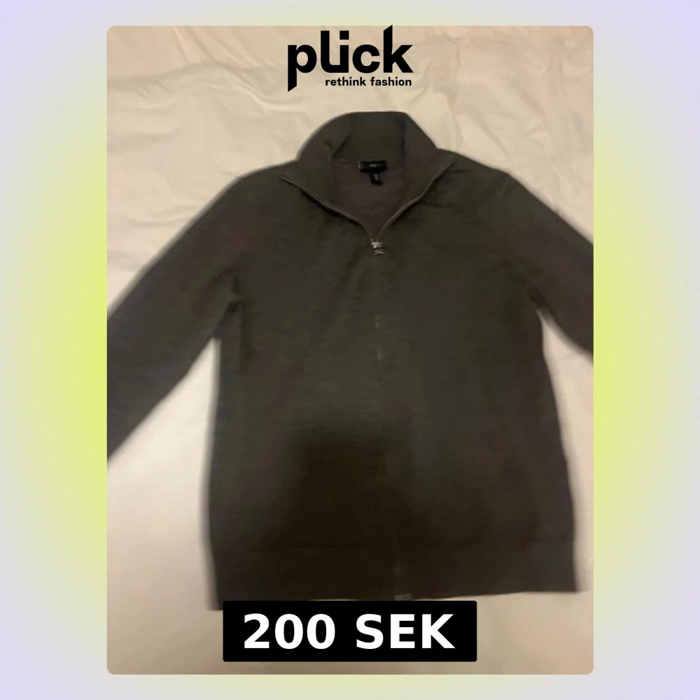 Mörkgrå ziptröja från H&M med hög krage och hel dragkedja framtill. Tröjan har långa ärmar och ribbade muddar vid ärmslut och nederkant. Tillverkad i mjukt och tunt material, perfekt för lager på lager.