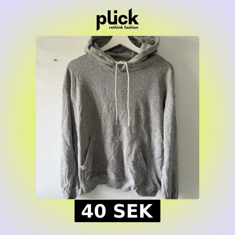 En klassisk grå hoodie från H&M med huva och vita snören. Tröjan har en stor magficka och ribbade muddar vid ärmslut och nederkant. Perfekt för chill dagar eller när du vill ha en enkel och stilren look. Storlek S men mer som en M 🌸