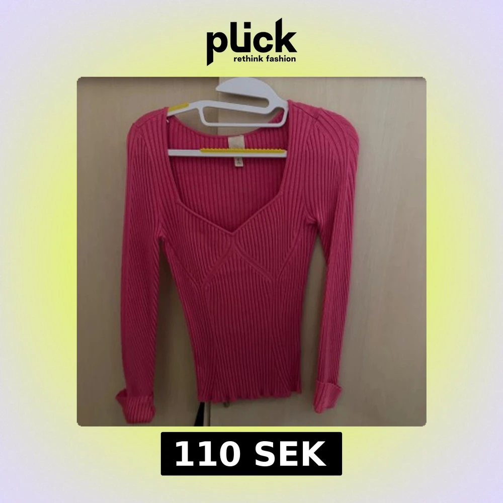 Säljer en snygg rosa ribbad tröja med v-ringning och långa ärmar. Perfekt för en stilren look.
