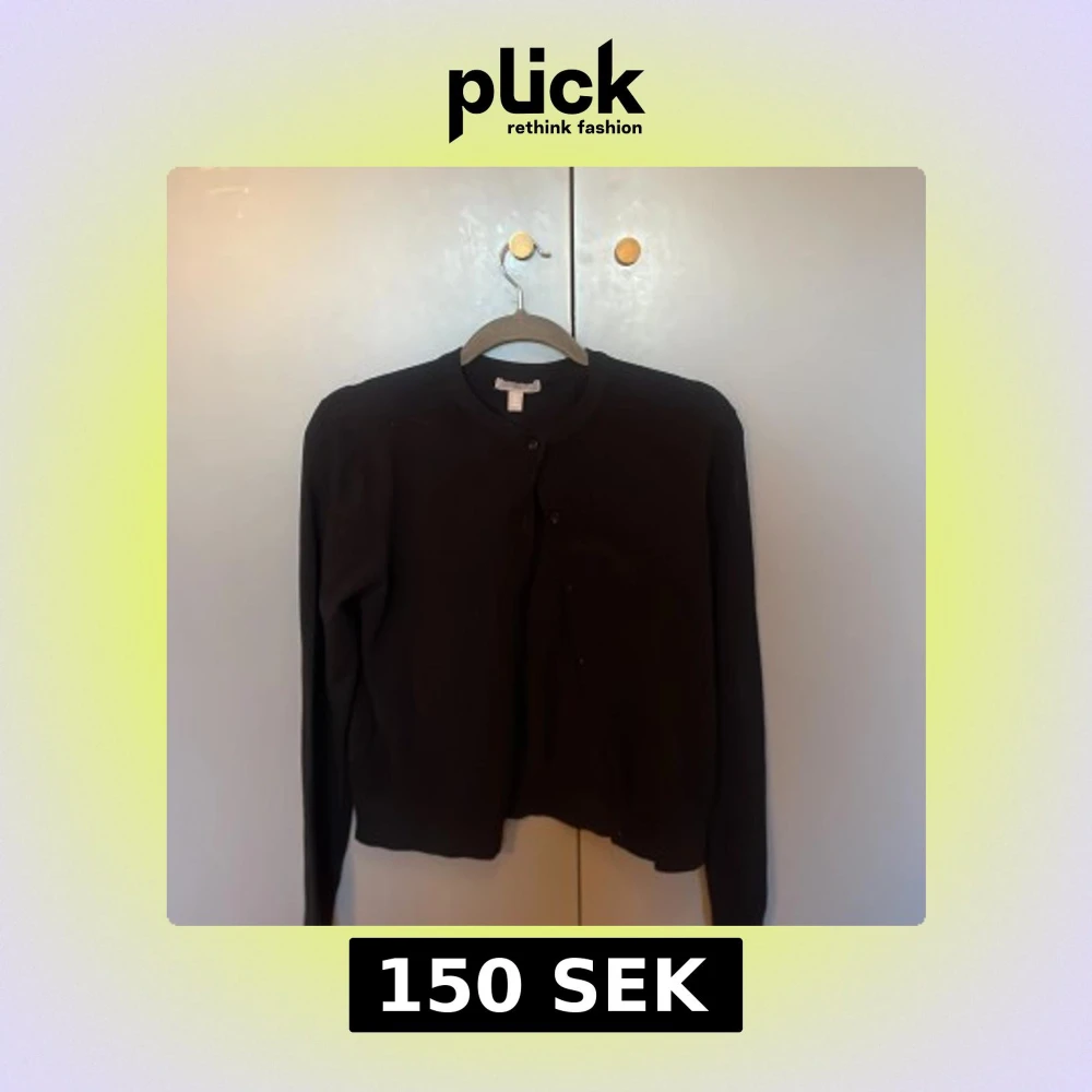 Svart klassisk kofta från H&M i storlek M. Den har rund halsringning, långa ärmar och knäppning framtill med svarta knappar. Materialet är mjukt och känns som bomull eller en bomullsblandning. Perfekt att slänga över en t-shirt eller linne för en chill look.