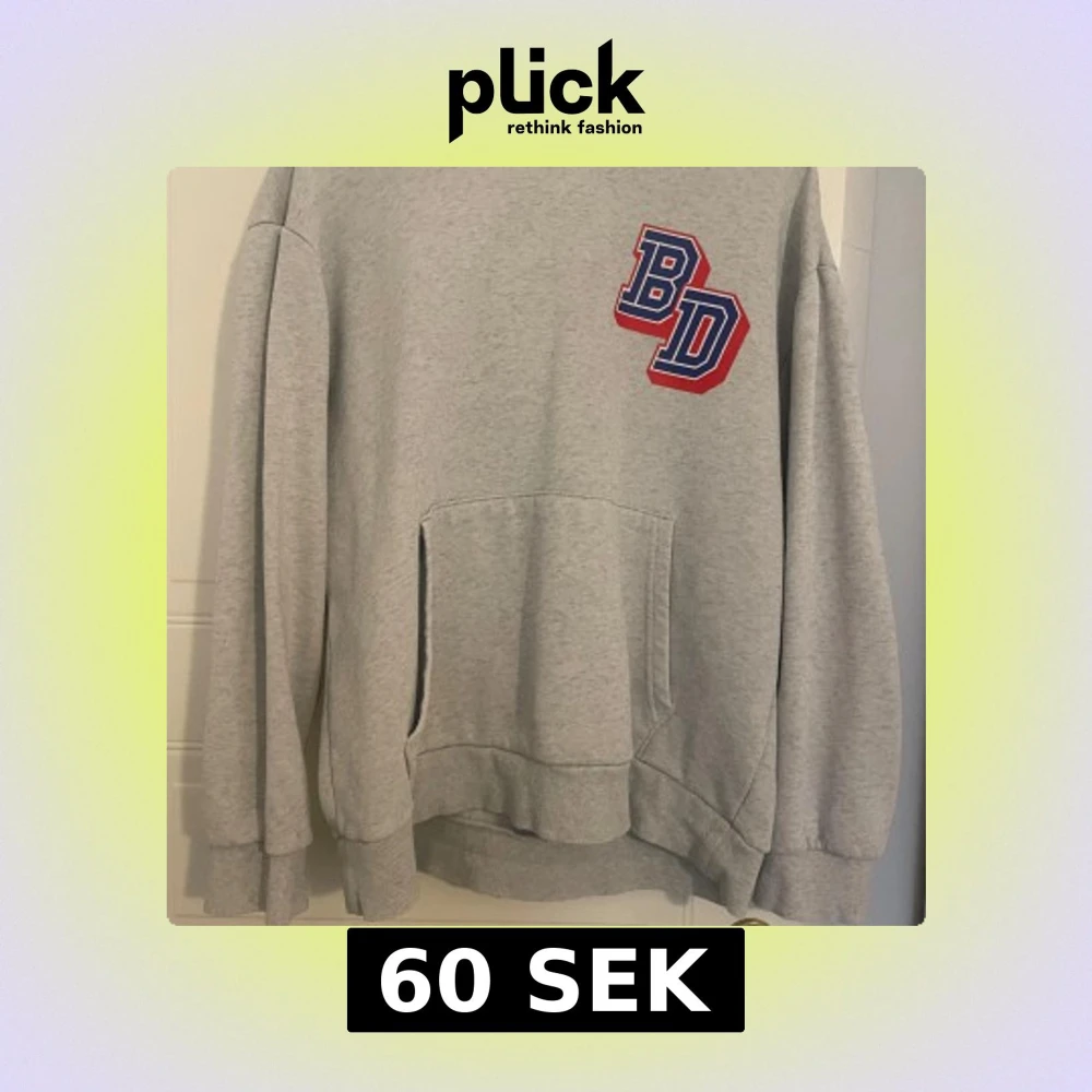 Snygg grå hoodie med stora BD-tryck i blått och rött både fram och bak. Perfekt för dig som gillar sportig och avslappnad stil. Långärmad och har en loose, oversize fit.
