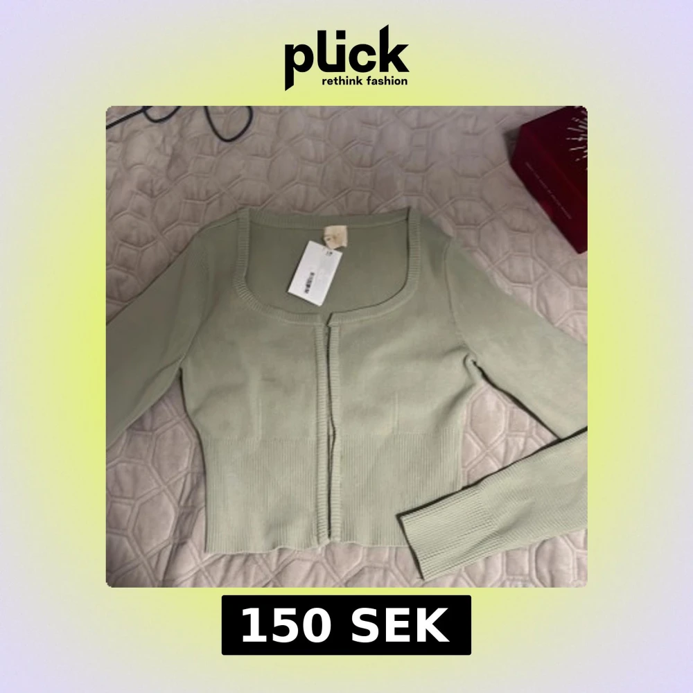 Supersnygg ljusgrön ribbad kofta från H&M med croppad passform och långärmade ärmar. Koftan har en rundad halsringning och knäppning framtill. Prislapp kvar