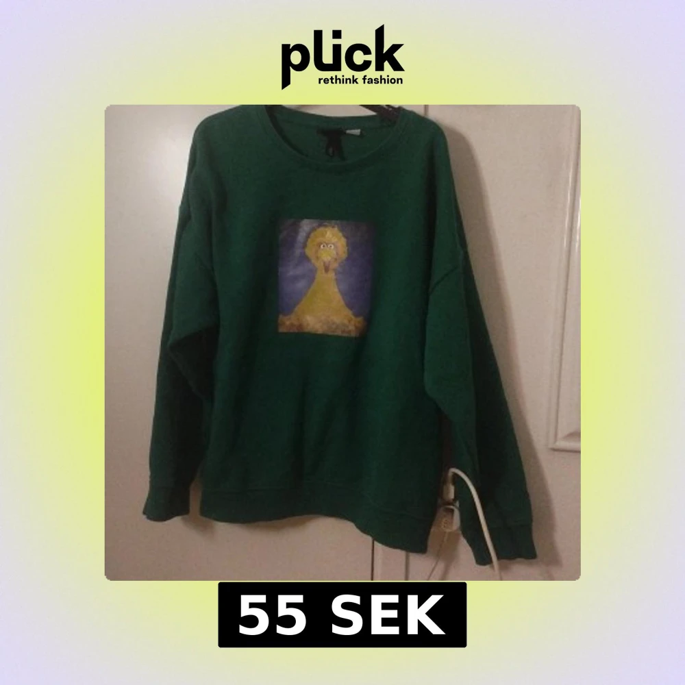 Grön sweatshirt från H&M med relaxed fit och motiv av Big Bird från Sesame Street både fram och bak. Tröjan har lång ärm och ribbade muddar, samt ett litet Sesame Street-tryck på ena ärmen. Perfekt för dig som gillar retro och streetstyle.