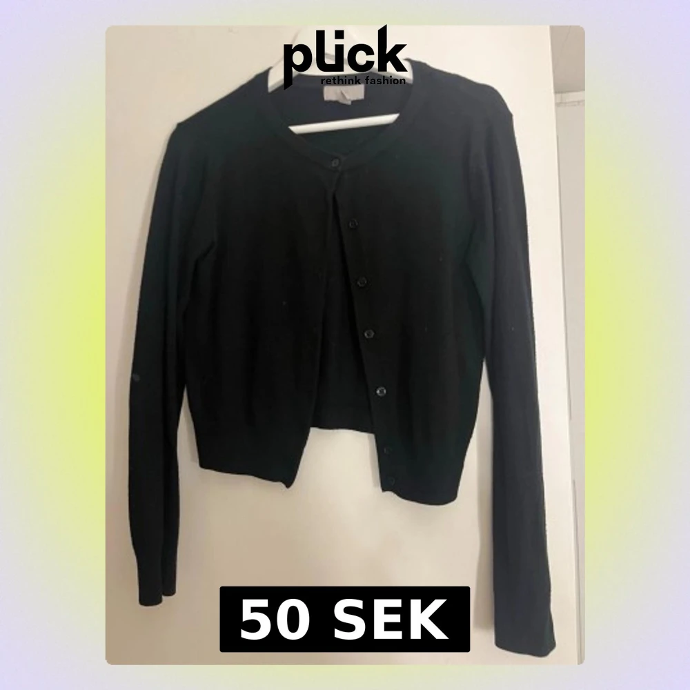 En enkel svart kofta med rund halsringning och knäppning framtill. Långärmad modell i mjukt material, perfekt att slänga över en topp eller klänning. Klassisk och stilren design som funkar till det mesta.