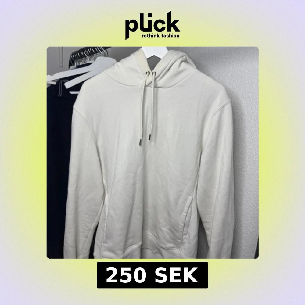 Säljer en stilren vit hoodie från H&M i storlek S. Tröjan har huva med snörning och en klassisk känguruficka framtill. Perfekt för dig som gillar en enkel och clean look. Materialet är mjukt och bekvämt, troligtvis bomullsmix.