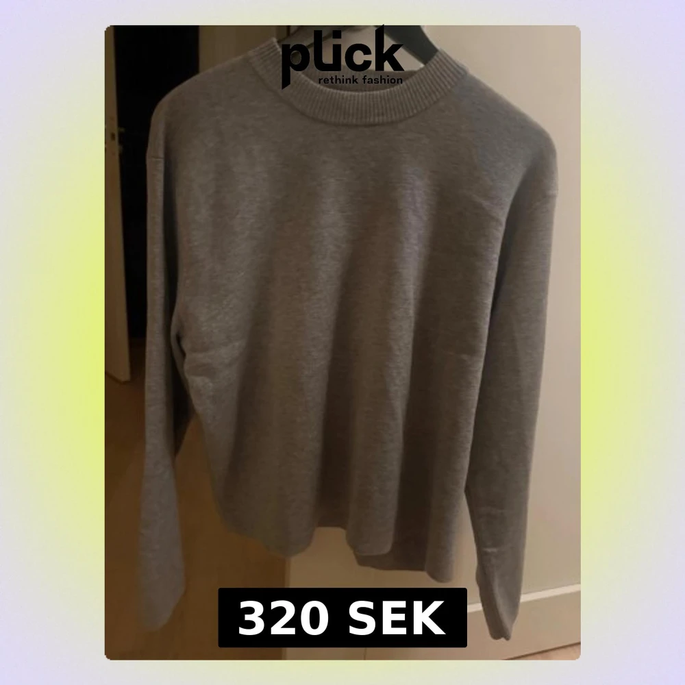 Enkel och stilren grå tröja från H&M i storlek S. Tröjan har rund halsringning med ribbad kant och långa ärmar. Perfekt till lager på lager och funkar året runt. Materialet är mjukt och skönt, troligtvis bomull eller bomullsblandning.