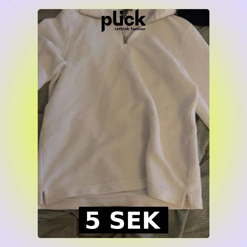 Vit ribbad tröja från H&M med halv dragkedja och hög krage. Långärmad modell i mjukt material, perfekt för lager på lager. Snygga slitsar i sidorna och stilren look som funkar till allt.