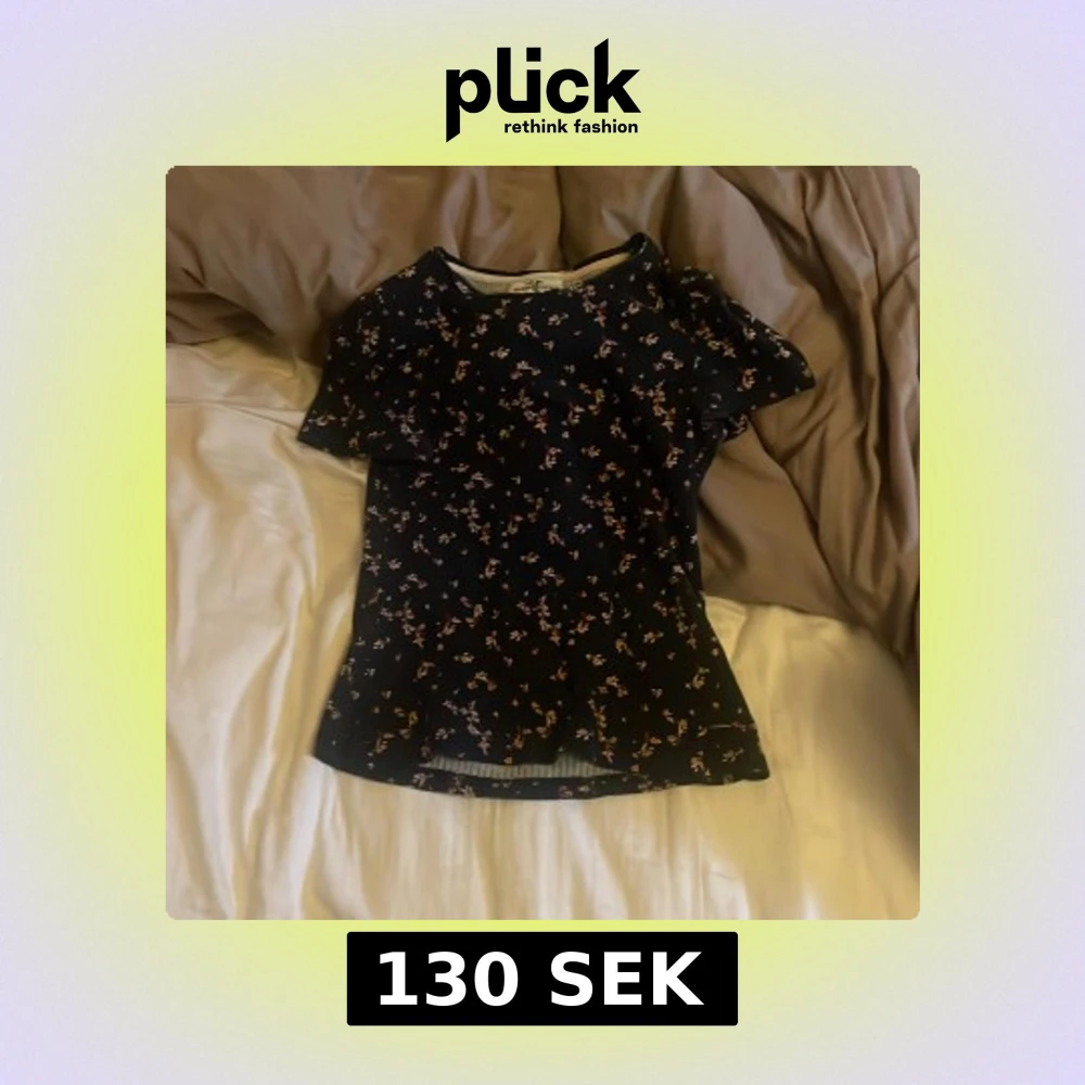 Supersöt svart blus med små blommor i rosa och beige. Blusen har rund hals och korta ärmar, perfekt för dig som gillar romantiska detaljer. Materialet är mjukt och lätt, vilket gör den skön att bära hela dagen. Passar dig som vill ha en feminin och chill stil.