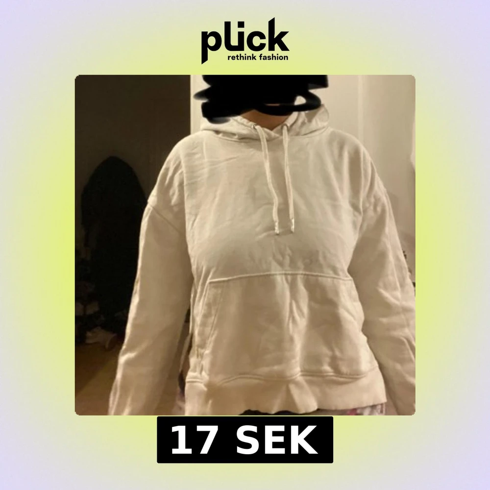Säljer en vit hoodie med huva och snörning. Tröjan har en stor magficka. Strl S men passar mig även som är XS. Från H&M divided.