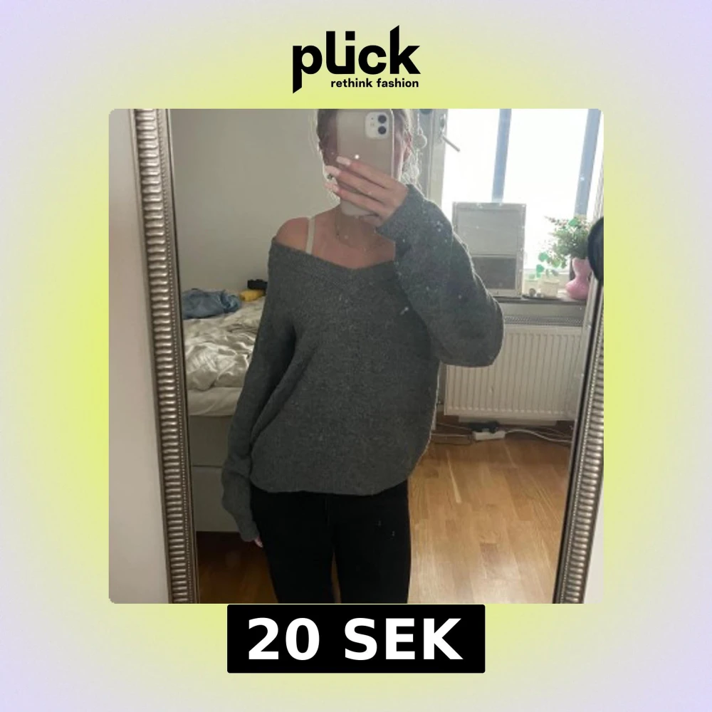 Mysig grå stickad tröja med offshoulder-design och lång ärm. Tröjan har en loose passform och är perfekt för dig som gillar en avslappnad och trendig stil! Stor i storlek och den har blivit lite nopprig.