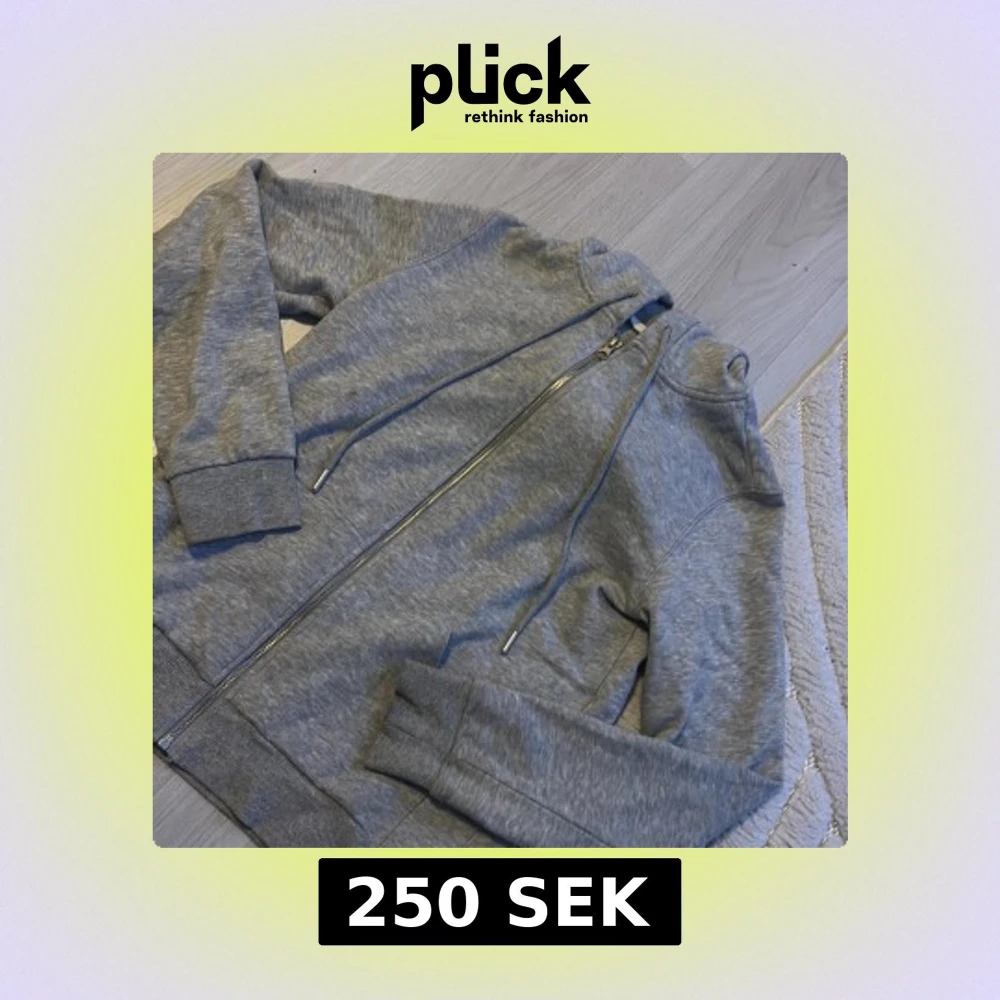 Säljer en bekväm grå hoodie med dragkedja framtill. Tröjan har långa ärmar och ribbade muddar vid ärmslut och nederkant. Perfekt för en avslappnad stil.