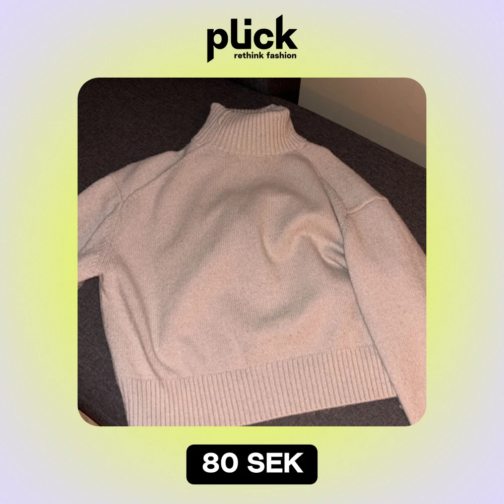 Mysig beige stickad polotröja i storlek xs från H&M. Perfekt för kyliga dagar med sin höga krage och långa ärmar. Tröjan har en ribbad kant vid ärmslut och nederkant, säljer pga av att jag inte tycker om den höga kragen så mycket och därför kommer den inte till användning🩵