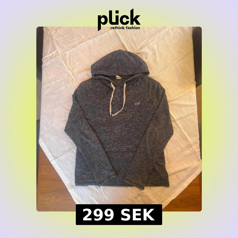 Snygg mörkgrå hoodie från Hollister i storlek S. Tröjan har vit snörning i huvan, lång ärm och ett broderat Hollister-logo på bröstet. Materialet är mjukt och känns som bomull, perfekt för chill dagar. Passformen är normal och färgen är melerad mörkgrå.