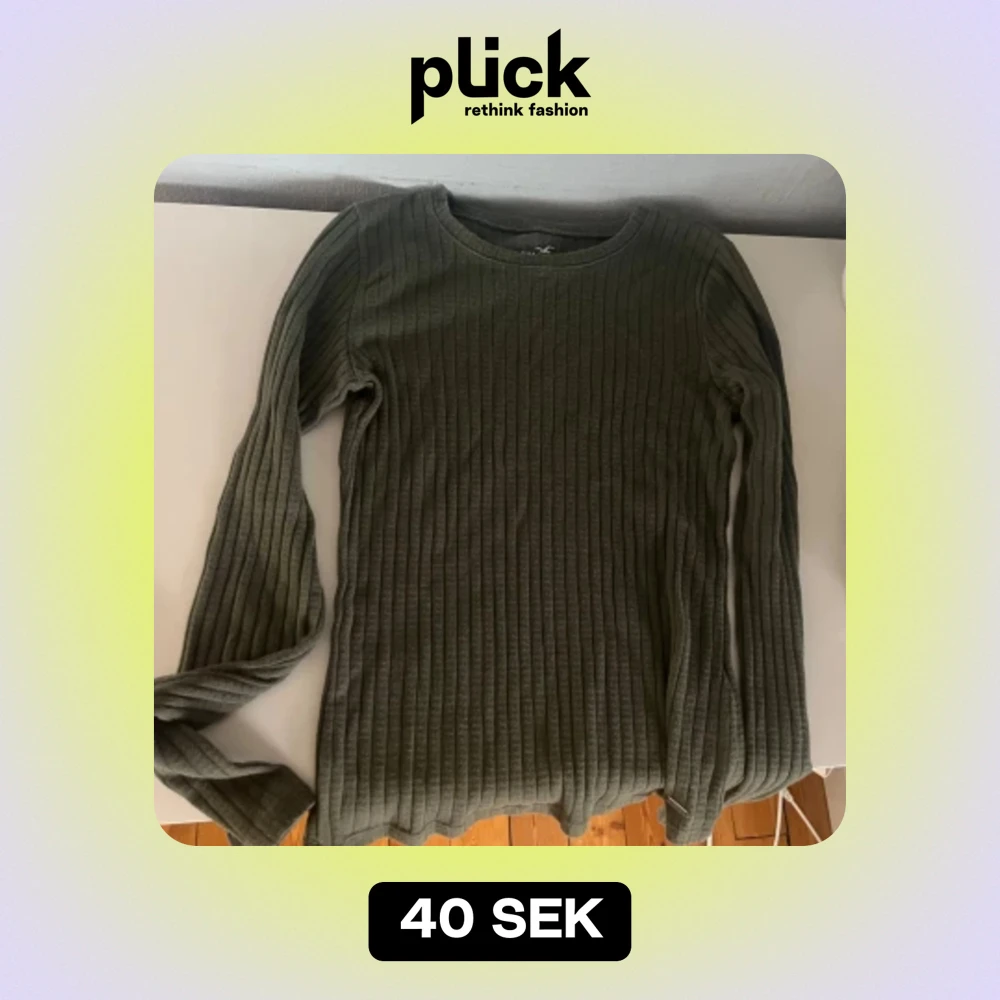 Säljer en snygg olivgrön ribbad tröja som är perfekt för höst och vinter. Den har långa ärmar och en rund halsringning. Tröjan är både stilren och bekväm, perfekt för vardagsbruk!