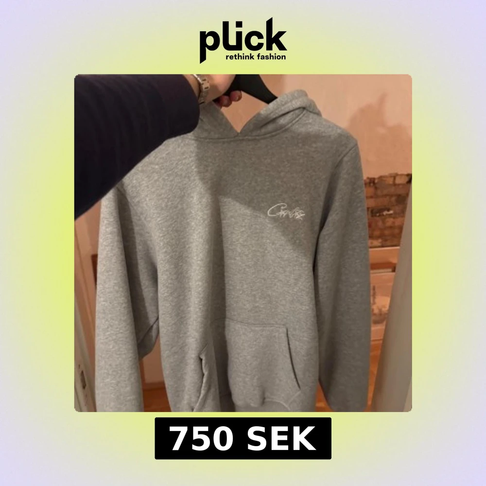 Säljer en stilren grå hoodie från corteiz i storlek small. Tröjan har huva, magficka och en liten vit logga på bröstet. Perfekt för en avslappnad look och enkel att matcha med det mesta. Använd max en handfull gånger, inga defekter. Pris kan diskuteras.