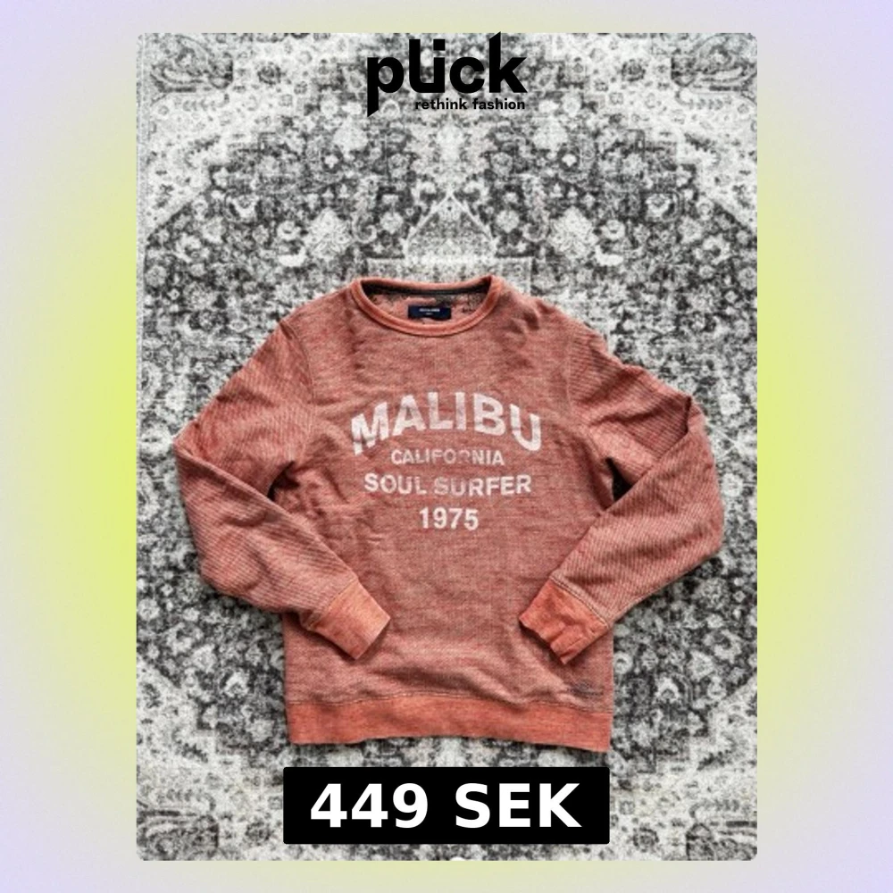 Vintage sweatshirt med trycket 'MALIBU CALIFORNIA SOUL SURFER 1975' pÄ bröstet. Bra skick storlek s/m. Skriv för mer information!