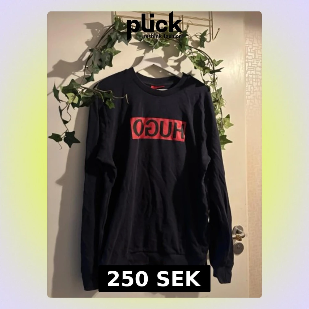 Cool svart sweatshirt från Hugo Boss med röd logga tryckt på bröstet. Tröjan har rund hals, långa ärmar och är gjord i mjuk bomull. Perfekt för dig som gillar stilrena och trendiga plagg med tydlig branding.