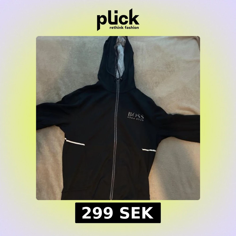 Svart hoodie från Hugo Boss med hel dragkedja framtill och vit logga på bröstet. Tröjan har huva med snörning och vita detaljer vid fickorna. Perfekt för en chill och stilren look.