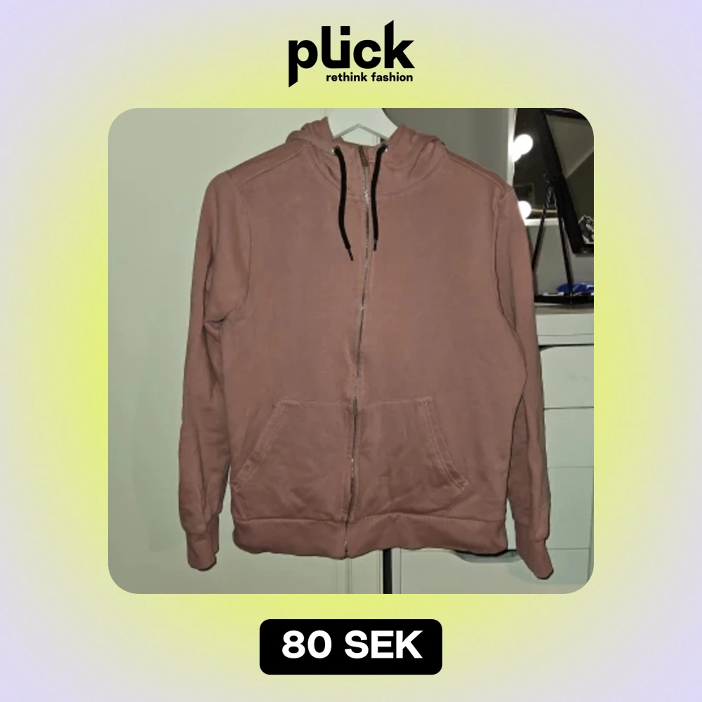Ny rosa huvtröja med dragkedja. Tröjan har två fickor framtill. Se sista bild för rätt färg. Katt finns I hemmet