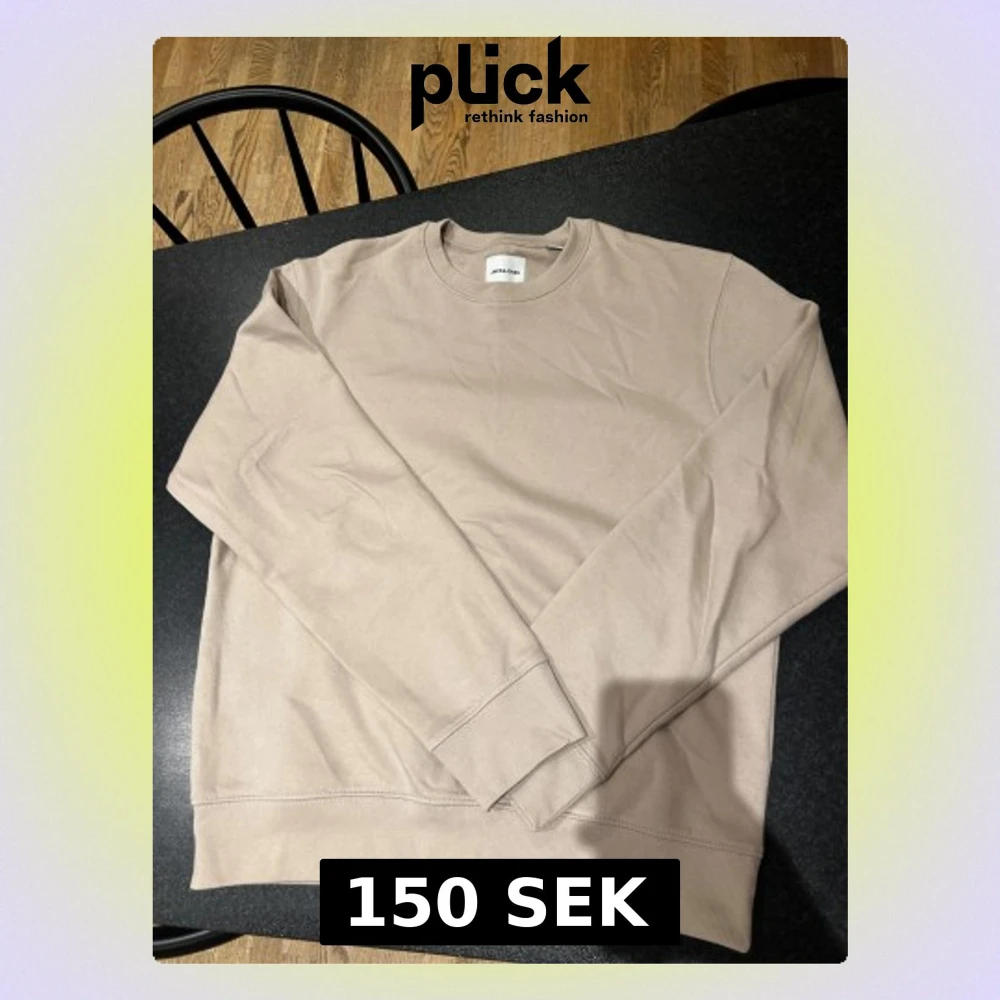 Säljer en stilren beige sweatshirt från Jack & Jones. Tröjan har rund hals, långa ärmar och är tillverkad i mjuk bomull. Perfekt för dig som gillar enkel och clean stil. Passar lika bra till jeans som till mjukisbyxor. Använt den ca 3 gånger.