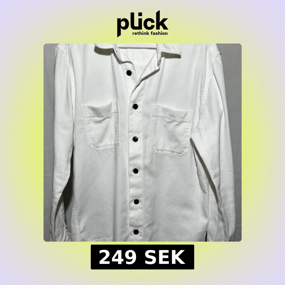 Vit overshirt med klassisk krage och två stora bröstfickor. Skjortan har svarta knappar längs hela framsidan och är tillverkad i ett mjukt bomullstyg. Långärmad och med en loose passform.