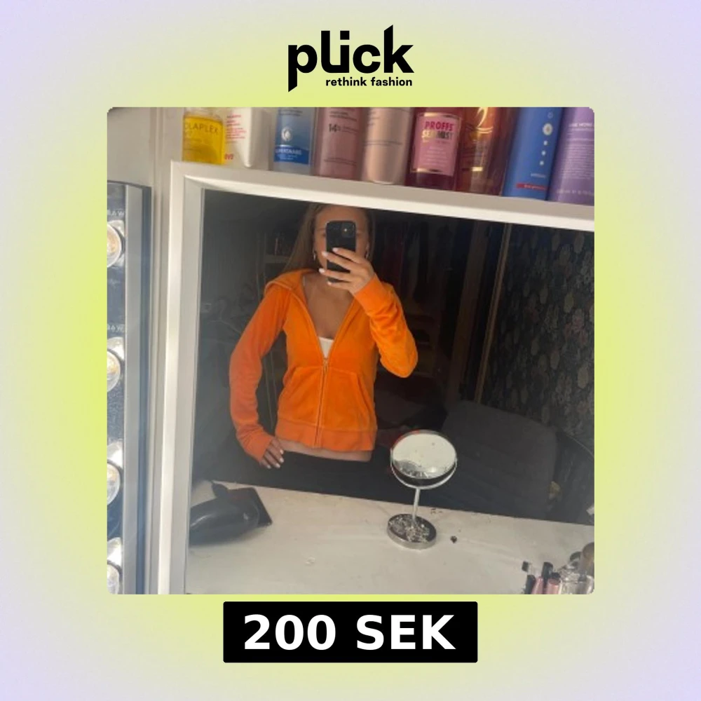 Juicy Couture hoodie i orange velour med dragkedja, huva och fickor fram. Stor krona och logga broderat på ryggen. Mjuk och skön, perfekt för en chill look. Klassisk 2000-talsstil som är supertrendig just nu.