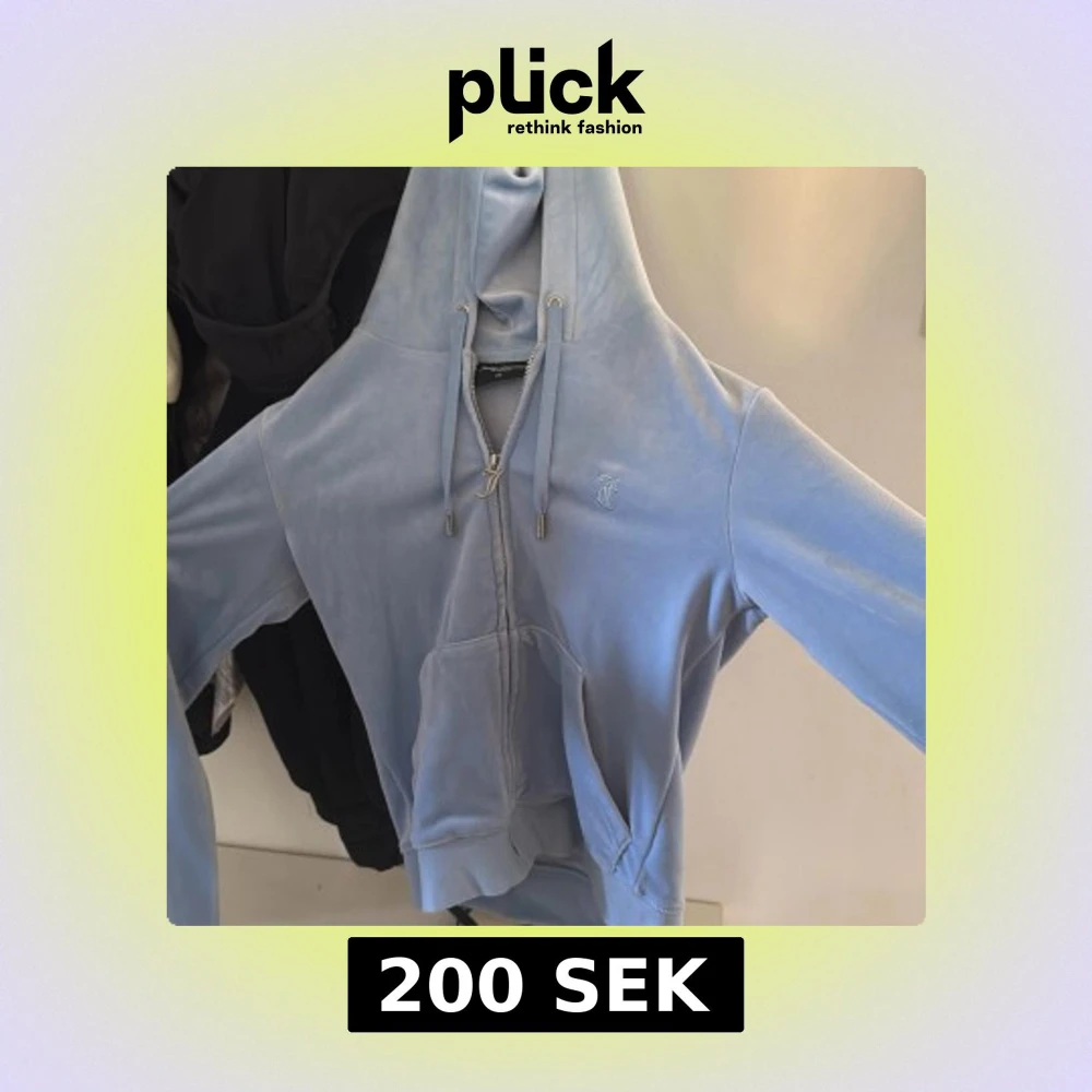 Supermjuk ljusblå hoodie från Juicy Couture i velour med dragkedja framtill, stor känguruficka och klassisk huva med snörning. Broderad JC-logga på bröstet. Perfekt för chill dagar eller när du vill ha en comfy look.