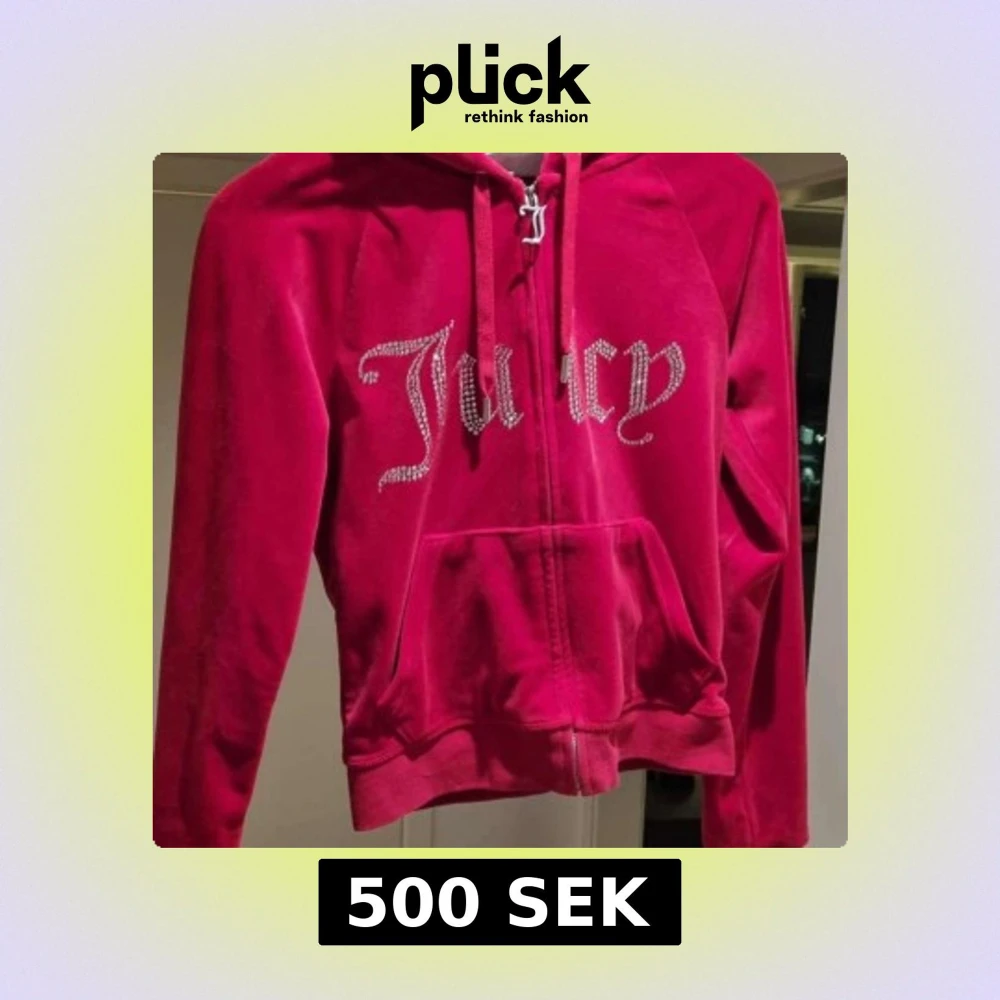 Säljer en äkta Juicy Couture hoodie i storlek XS. Den är röd och har "Juicy" i strass på framsidan. Hoodien är knappast använd och är i mycket gott skick, inga fläckar eller hål.