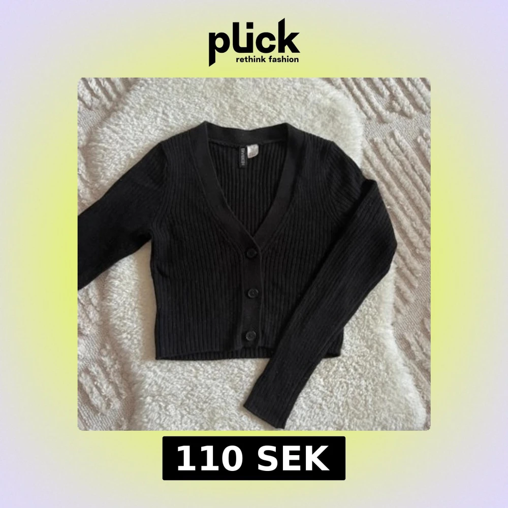 Svart croppad kofta från H&M Divided med ribbad struktur och v-ringning. Koftan har tre knappar framtill och långa ärmar, perfekt att slänga över en topp för en chill look.